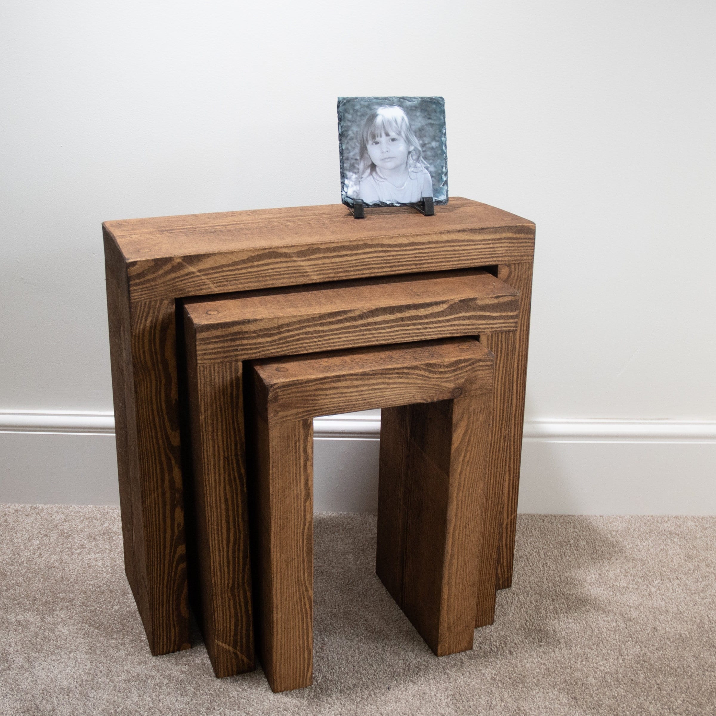 Set Of 3 Solid Wood Rustic Nest Of Tables With Chunky Legs Etsy